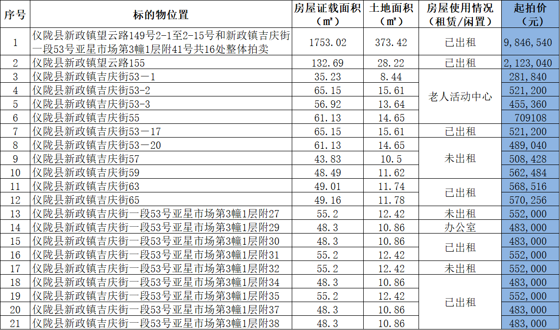 一、仪陇新政商业用房基本情况表